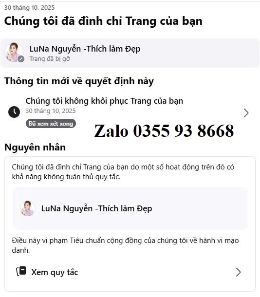 Dịch vụ mở khóa Fanpage mạo danh uy tín - Kháng page về mới nhận thanh toán Liên hệ Zalo 0355 93 8668
