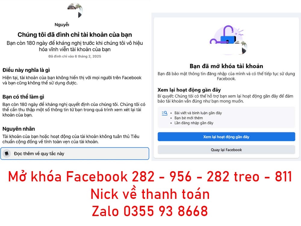 AE cần mở khóa tài khoản Facebook Liên hệ Zalo 0355 93 8668